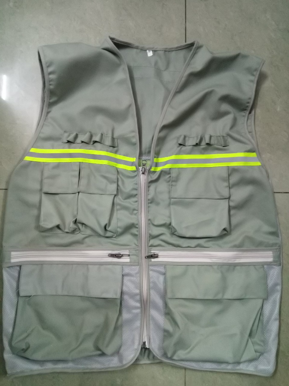 Nguồn nguyên vật liệu tốt phản quang dây vải bạc 5 cm, vải áo thấm hút tốt, có 8 túi để đựng đồ nghề,dây chuyền may chuyên nghiệp, công nhân may lành nghề tỉ mỉ cho ra sản phẩm áo ghi lê phản quang, tiện dụng và đạt hiệu quả an toàn.